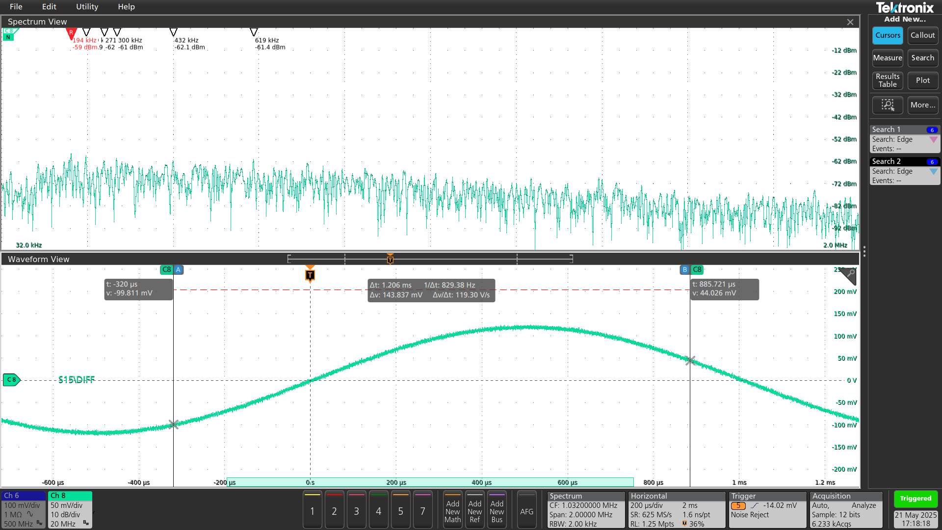 Black trace: Sensitec CAS5025SRA-LI output (single-ended)