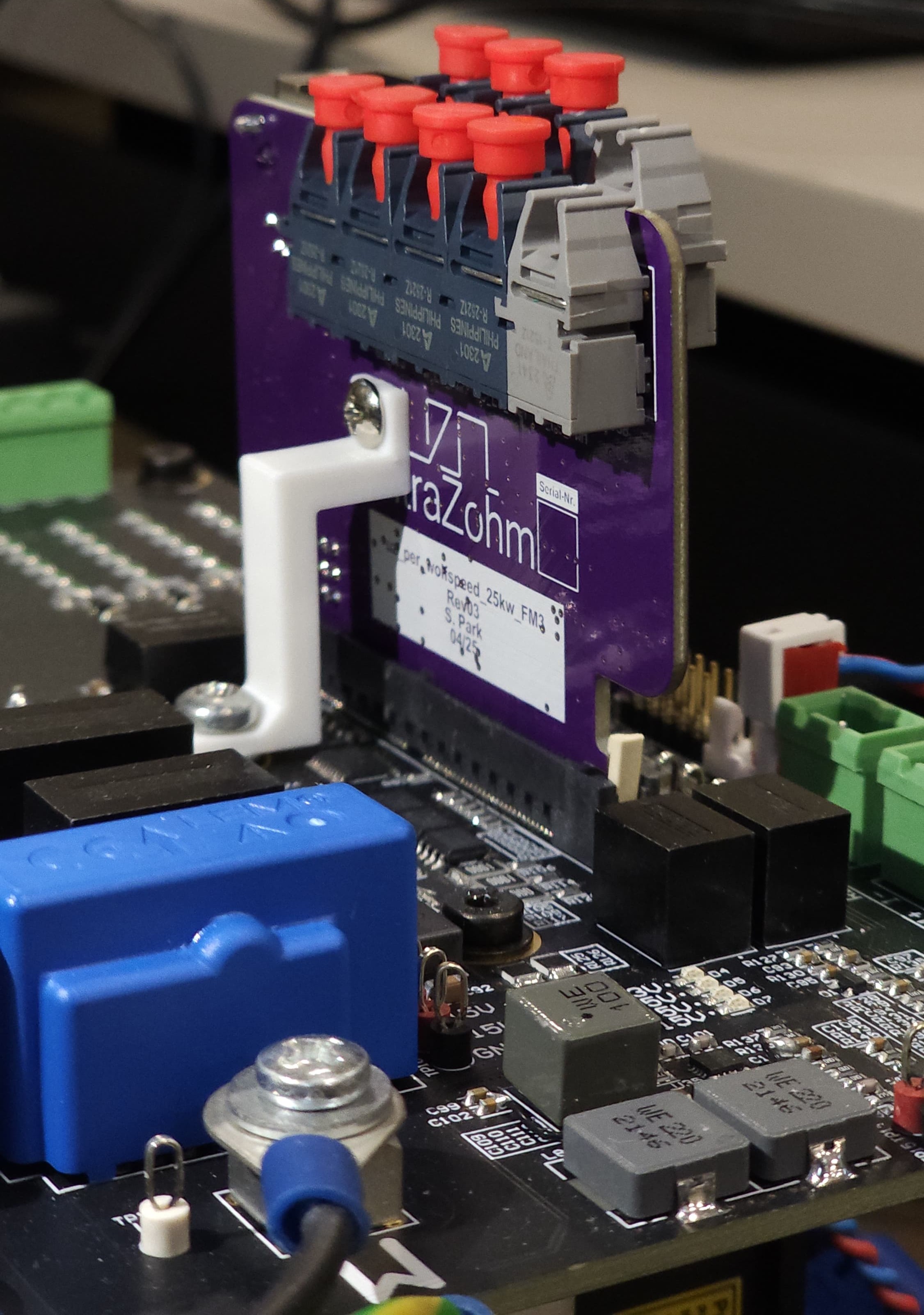 This PCB is designed to interface the UltraZohm with the Wolfspeed CRD25DA12N-FMC 25 kW Three-Phase Inverter. It plugs directly into the Wolfspeed inverter in place of the Texas Instruments TMDSCNCD280039C control card.