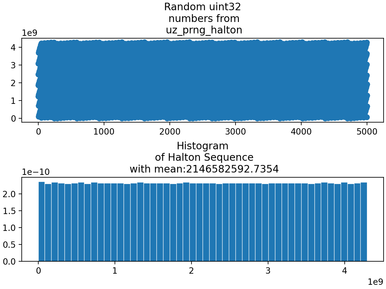 Fig. 347 Distribution generated using the Halton sequence generating uint32.#